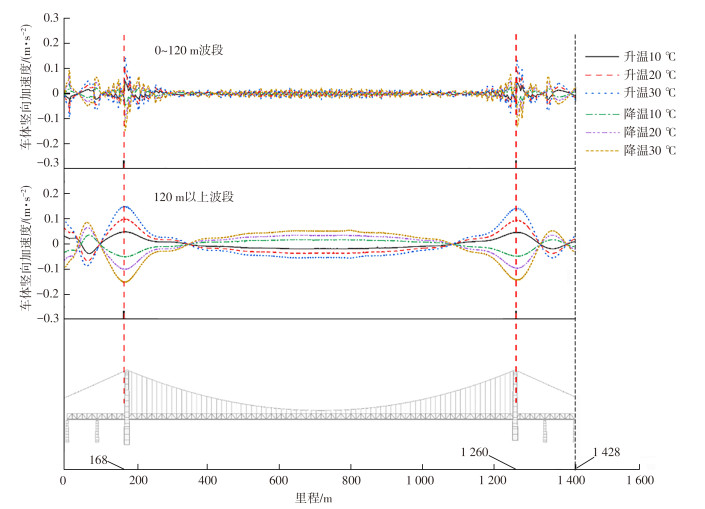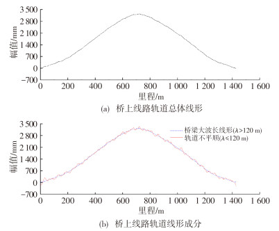 为建立适用于大跨度悬索桥的轨道线形管理方法与指标体系,弥补既有线路管理指标在桥梁及轨道运维中的不足,依托某主跨1 092 m的大跨度铁路悬索桥开展研究。通过车-线-桥耦合动力分析,研究了大跨桥梁变形引起的轨道线形演变对桥上高速列车运行的影响规律,识别了大跨桥上轨道线形的平顺性管理截止波长;基于波长分离方法,分离桥上轨道不平顺与桥梁动态纵断面,并对照区间线路的管理标准,提出大跨度铁路悬索桥场景下相统一的指标体系;量化分析了大跨铁路悬索桥轨道中各线形成分对车体加速度的影响。研究结果表明:大跨桥上轨道线形平顺性管理截止波长可采用120 m;基于截止波长实现桥上轨道不平顺与桥梁动态纵断面的有效分离,在此基础上使大跨铁路悬索桥轨道管理指标与区间线路标准相统一;基于行车平稳性指标限值,可以反推桥上轨道不平顺与桥梁动态纵断面的管理指标限值,形成大跨铁路悬索桥线-桥一体化管理指标体系,指导大跨度铁路悬索桥设计和运维。