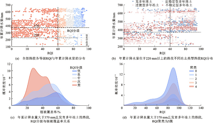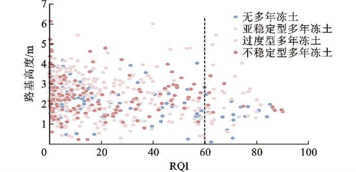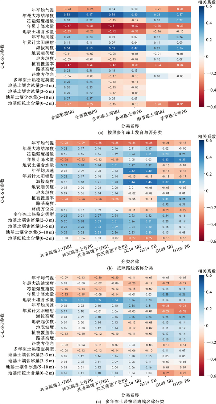 Abstract: To identify the main driving factors of deformation for inservice highway subgrades in the permafrost region of the Qinghai-Xizang Plateau and their adaptability to climate change, three inservice highways crossing the two major engineering corridors — Golmud to Nagqu and Gonghe to Yushu in the permafrost region of the Qinghai-Xizang Plateau were selected. The spatial correlations between indicators of subgrade deformation and a range of factors, including climate environment parameters, traffic loading differences, inherent parameters of subgrade engineering, and parameters of the site where the subgrade engineering was located were examined. The concept of climate resilience for highway subgrades in the permafrost region of the Qinghai-Xizang Plateau was proposed. Analysis results show that elevation and maximum frozen depth, as well as vegetation coverage and annual cumulative precipitation, are the predominant driving factors influencing the variation of the international roughness index and bumpiness index, with absolute correlation coefficients exceeding 0.4, significantly distinguishing them from other factors. In the seasonal frozen zone, regardless of the annual cumulative precipitation, the road quality index (RQI) remains above good level. In the permafrost zone, when the annual cumulative precipitation is in the range of 220-370 mm, the RQI is mostly poor. However, when the annual cumulative precipitation exceeds 370 mm, the main driving factors of subgrade deformation are the ice content of permafrost, groundwater, soil type, and the jump-like distribution of roadside accumulated water erosion along the route. Furthermore, the heat accumulation effect caused by annual precipitation exceeding 370 mm and roadside water accumulation leads to the alternating development of thaw zones and permafrost islands, which is the main reason for the lack of clear strong correlation with the driving factors in this region. The subgrade overall follows the long-cycle subsidence and seasonal frost heave-thaw collapse of the natural terrain, and the use of subgrades with special structures can slow down the subsidence rate, while pile-raft foundation can effectively terminate the subsidence trend. It is recommended to enhance the structural resilience of the pavement-subgrade-foundation system and reduce the adverse impact of climate environment on site parameters to improve the climate resilience of highway subgrades in permafrost regions. This study provides theoretical guidance and practical reference for the maintenance and renovation of highway engineering in this region. More>